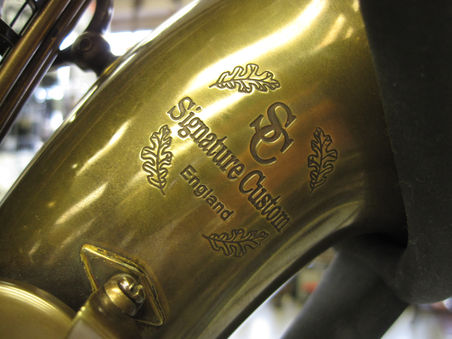 The Trevor James Signature Custom Raw Tenor & Alto Saxophones are a professional line of instruments now available in the United States and Canada. The flagship large bell Raw model is a bare‐brass finish. After the manufacturing process, the saxophone is simply cleaned and coated in a wax finish, preserving the raw brass style. The lack of lacquer means the saxophone will age naturally over time, giving it an even more vintage look and feel. The horn looks stunning with it’s detailed engraving on the bell, as well as the model name engraved into the crook.